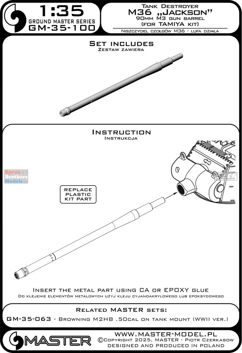 MASGM35100 1:35 Master Model Gun Barrel - M36 Jackson (TAM kit)