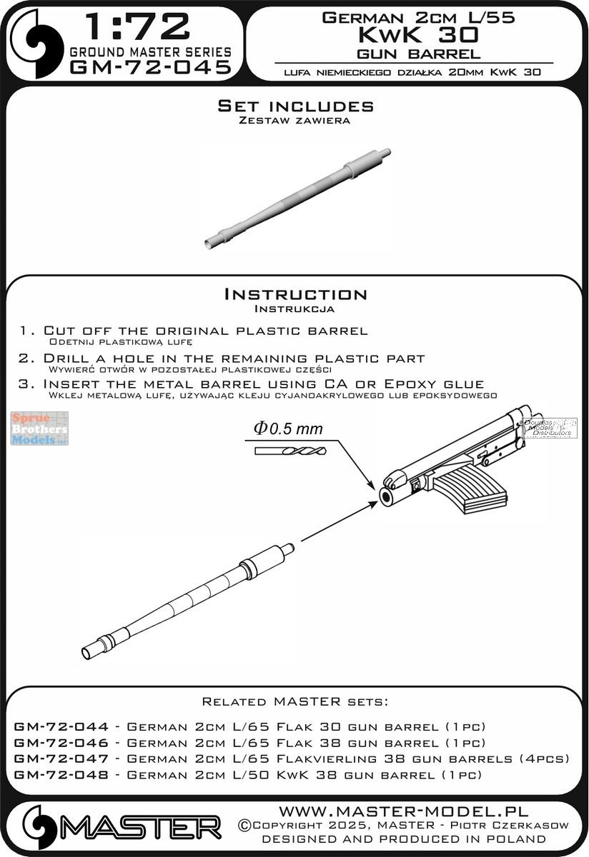 MASGM72045 1:72 Master Model Gun Barrel Set - 2cm L/55 KwK 30