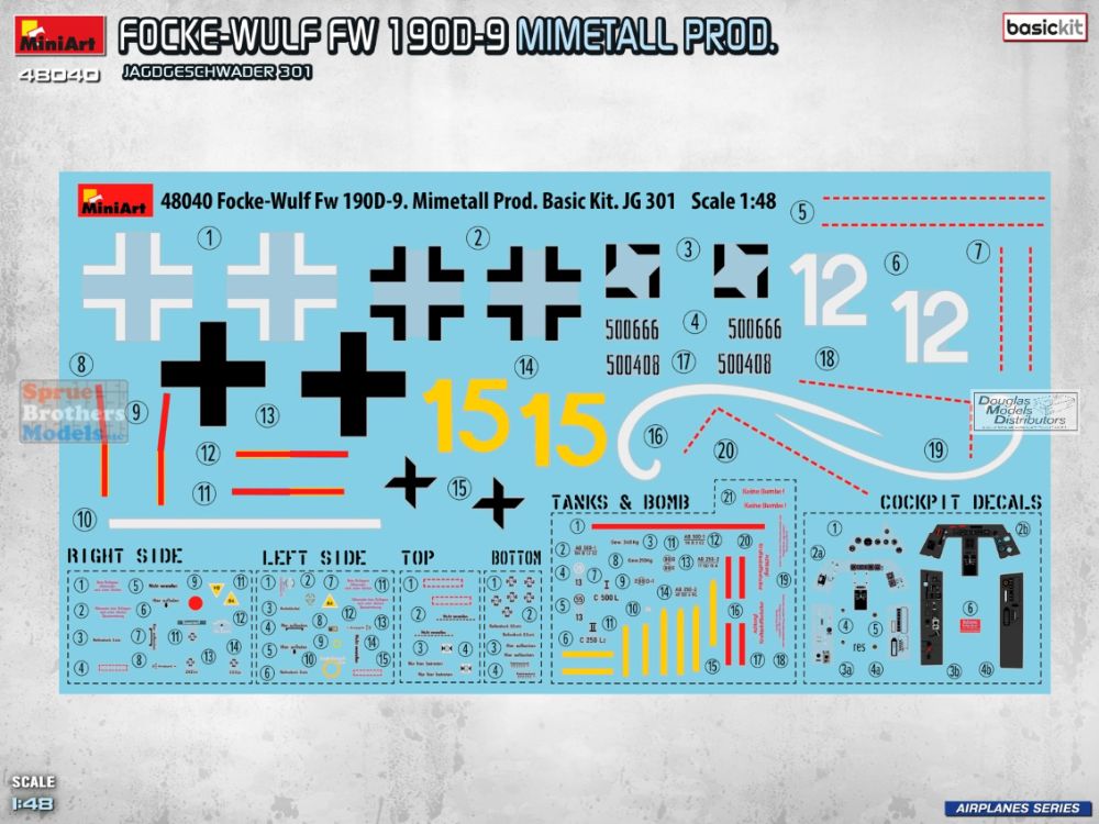 MIA48040 1:48 Miniart Fw190D-9 Mimetall Production Jagdeschwader 301 [Basic Kit]