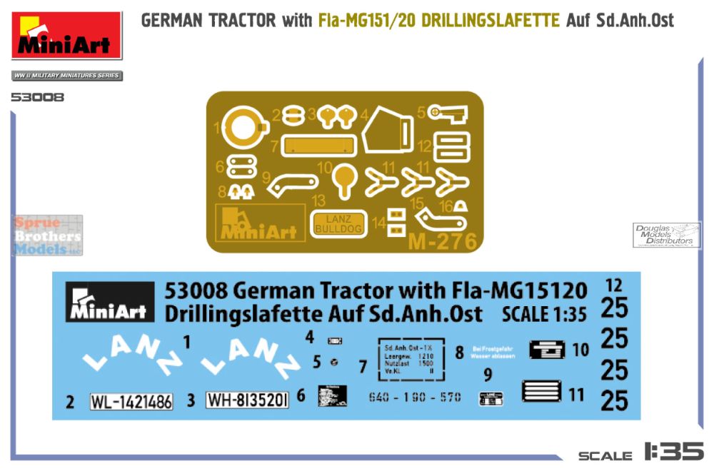 MIA53008 1:35 MiniArt German Tractor with Fla-MG151/20 Drillingslafette Auf Sd.Anh.Ost