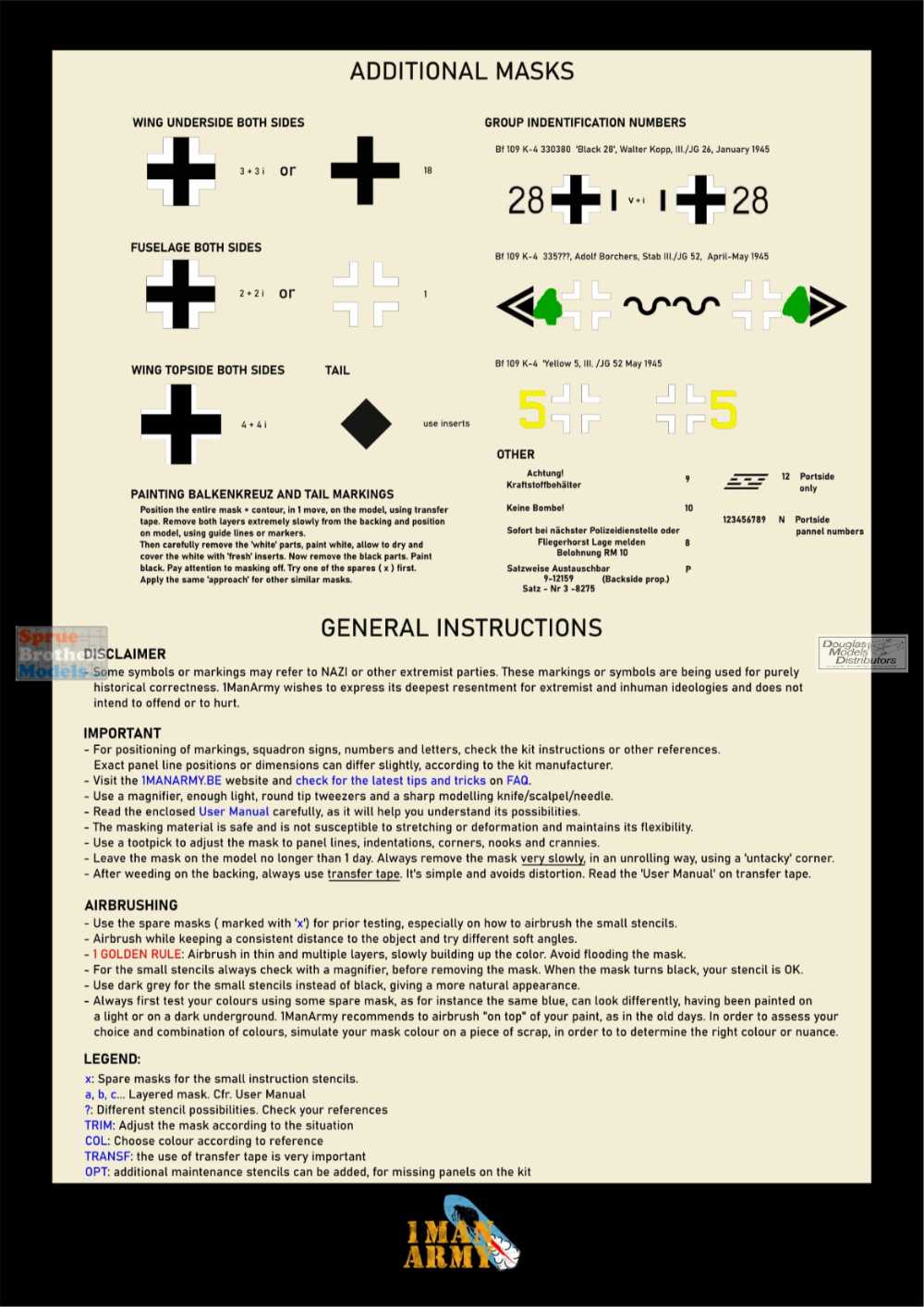 OMA32DET053 1:32 1Man Army Basic Markings & Stencil Masks - Bf109K-4 (KOT kit)