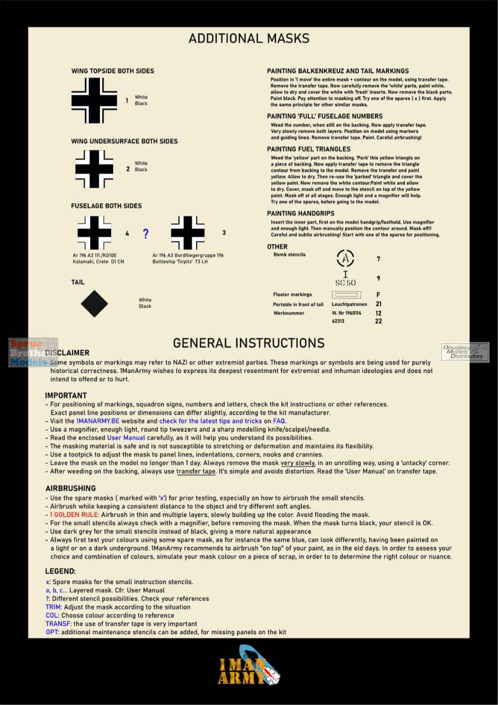 OMA32DET057 1:32 1Man Army Basic Markings & Stencil Masks - Arado Ar196A-3 (REV kit)