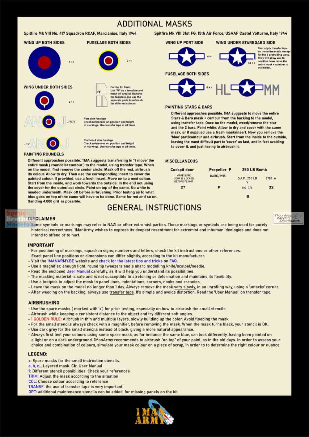 OMA32DET058 1:32 1Man Army Basic Markings & Stencil Masks - Spitfire Mk.VIII (TAM kit)
