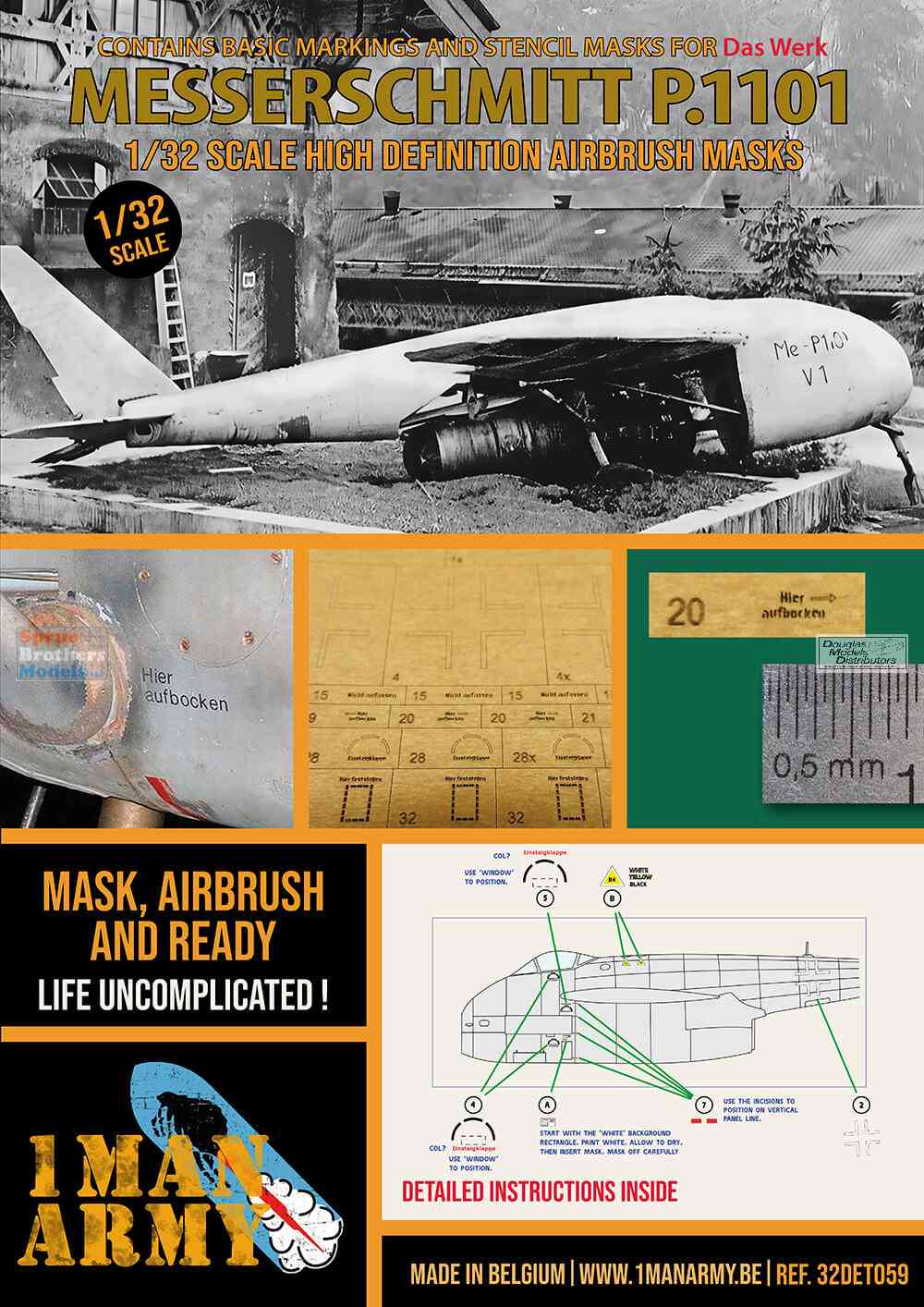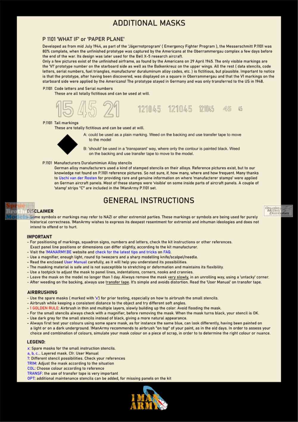 OMA32DET059 1:32 1Man Army Basic Markings & Stencil Masks - Messerschmitt P.1101 (DAS kit)