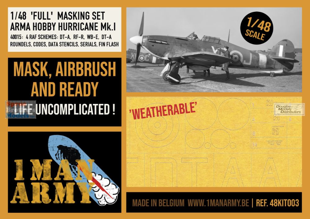 OMA48KIT003 1:48 1Man Army Masks: Hurricane Mk.I Full Masking Set (ARM kit)
