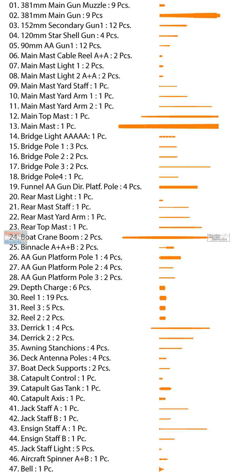 Composed of 158 Scribed Brass / 7 Photo Etching sheets / 3D Printed 650 Parts / Stained Wooden Deck for one ship kit
