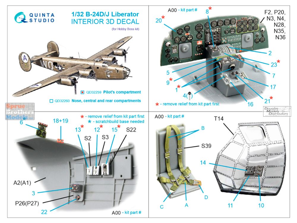 QTSQD32259 1:32 Quinta Studio 3D Decal - B-24D B-24J Liberator Pilot Compartment (HBS kit)
