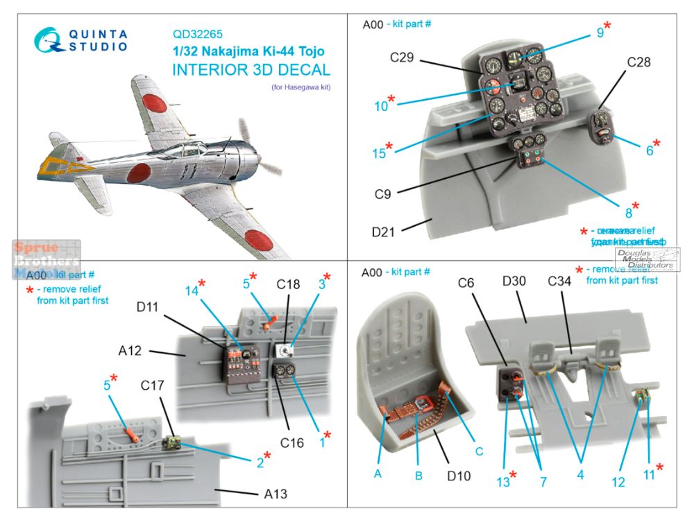 QTSQD32265 1:32 Quinta Studio 3D Decal - Ki-44 Tojo (HAS kit)