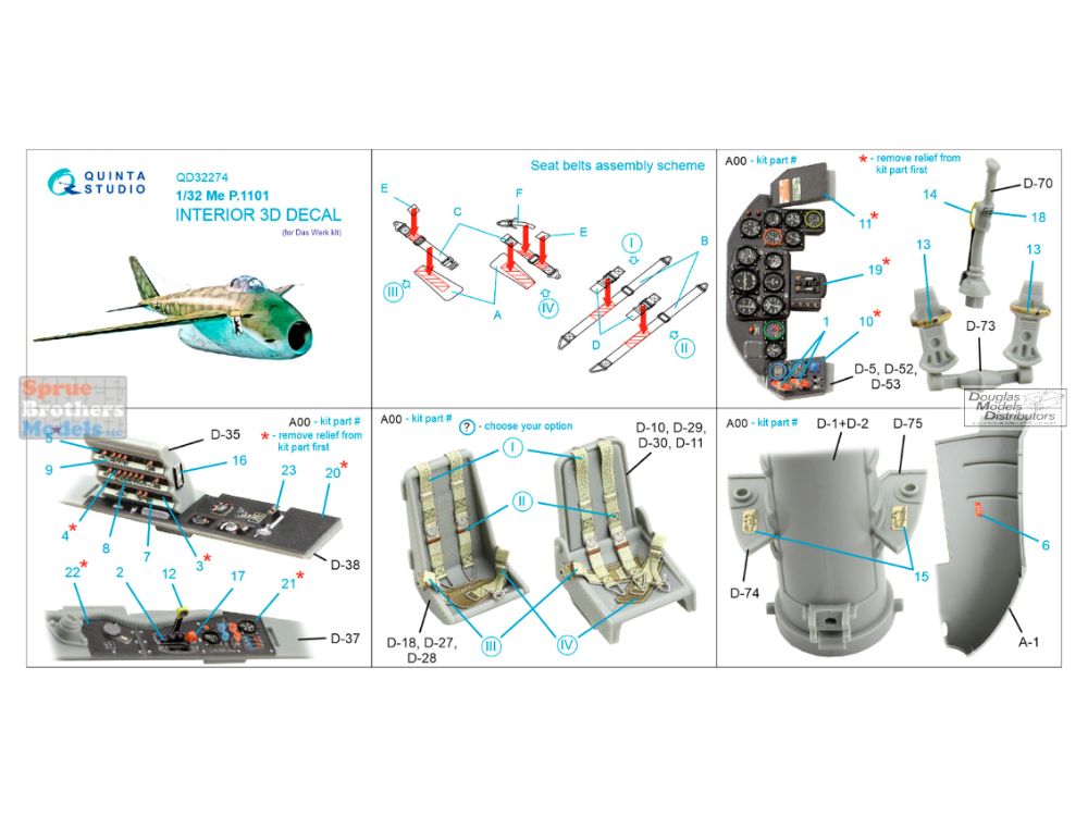 QTSQD32274 1:32 Quinta Studio 3D Decal - Me P.1101 (DAS kit)