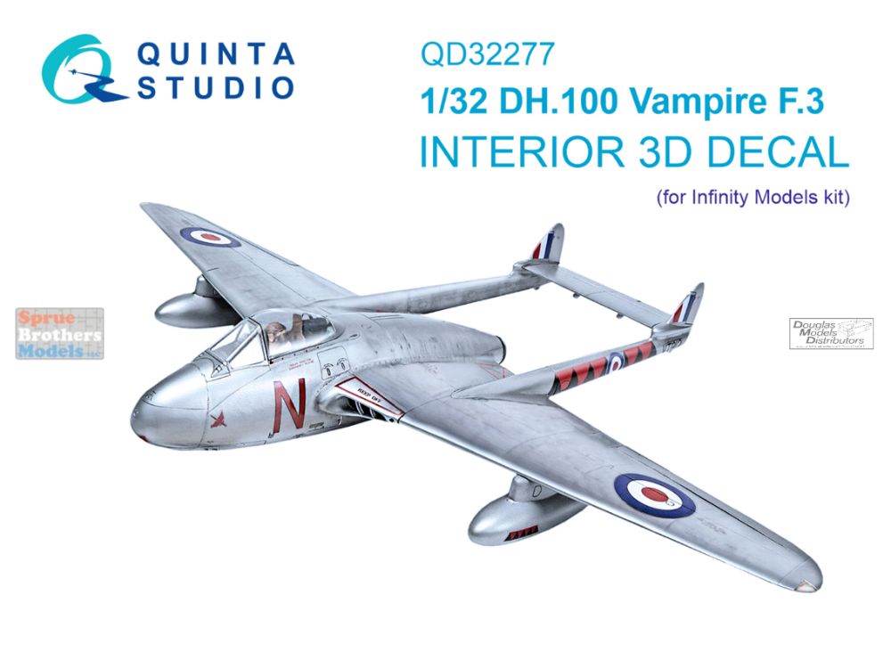 QTSQD32277 1:32 Quinta Studio 3D Decal - DH.100 Vampire F.3 (IFM kit)