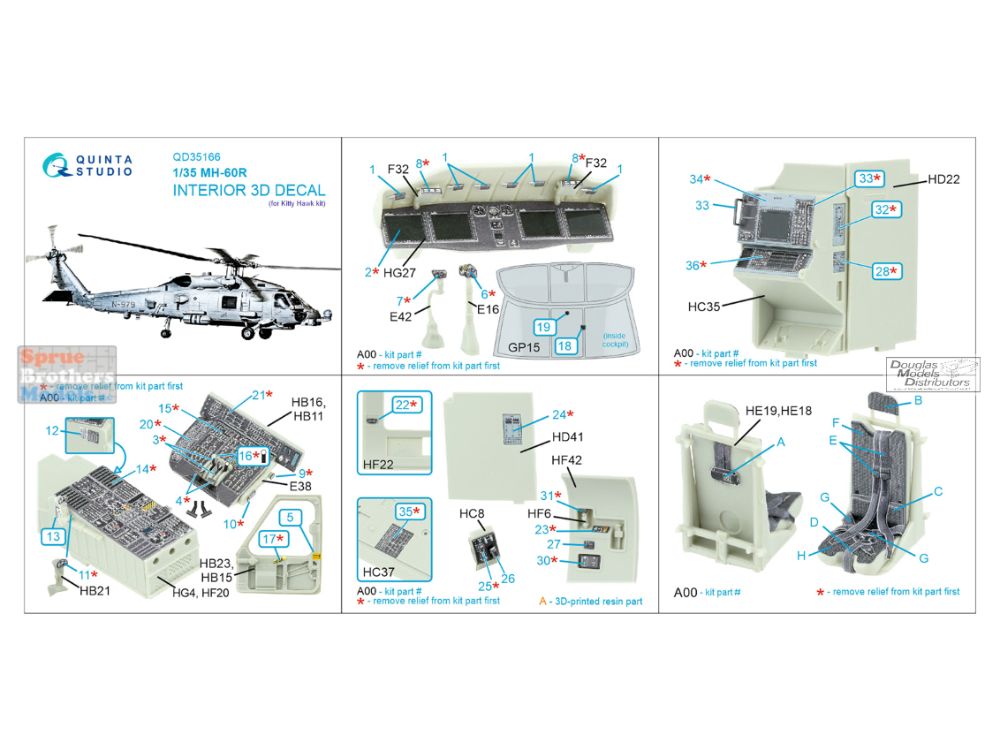 QTSQD35166 1:35 Quinta Studio 3D Decal - MH-60R SeaHawk (ZIM/KTH kit)