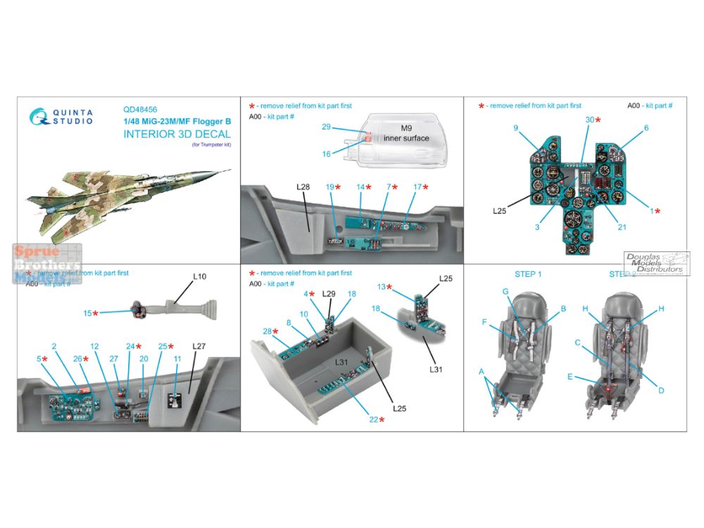 QTSQD48456 1:48 Quinta Studio 3D Decal - MiG-23M Mig-23MF Flogger (TRP kit)