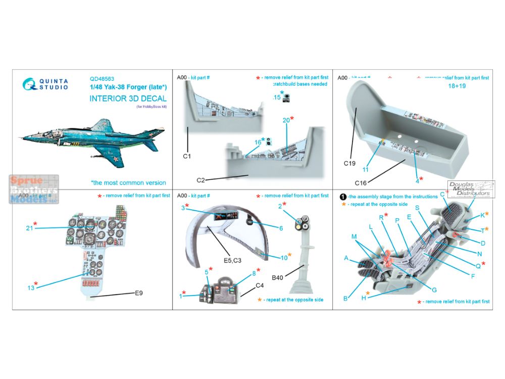 QTSQD48563 1:48 Quinta Studio 3D Decal - Yak-38 Forger Late (HBS kit)