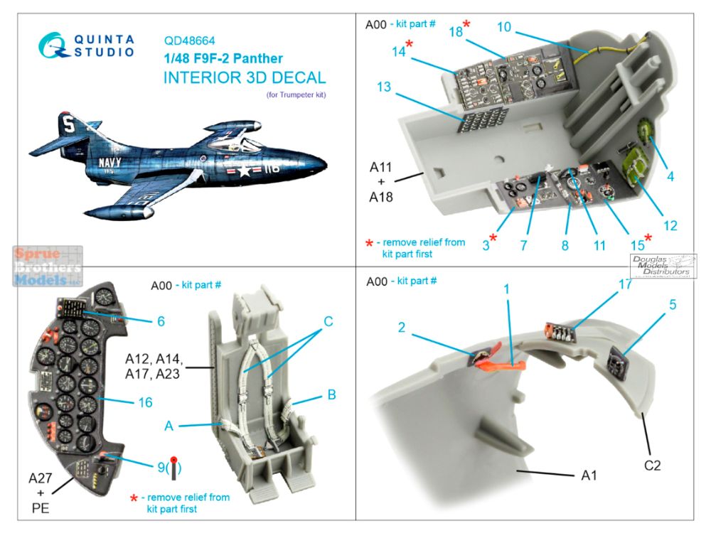 QTSQD48664 1:48 Quinta Studio 3D Decal - F9F-2 Panther (TRP kit)