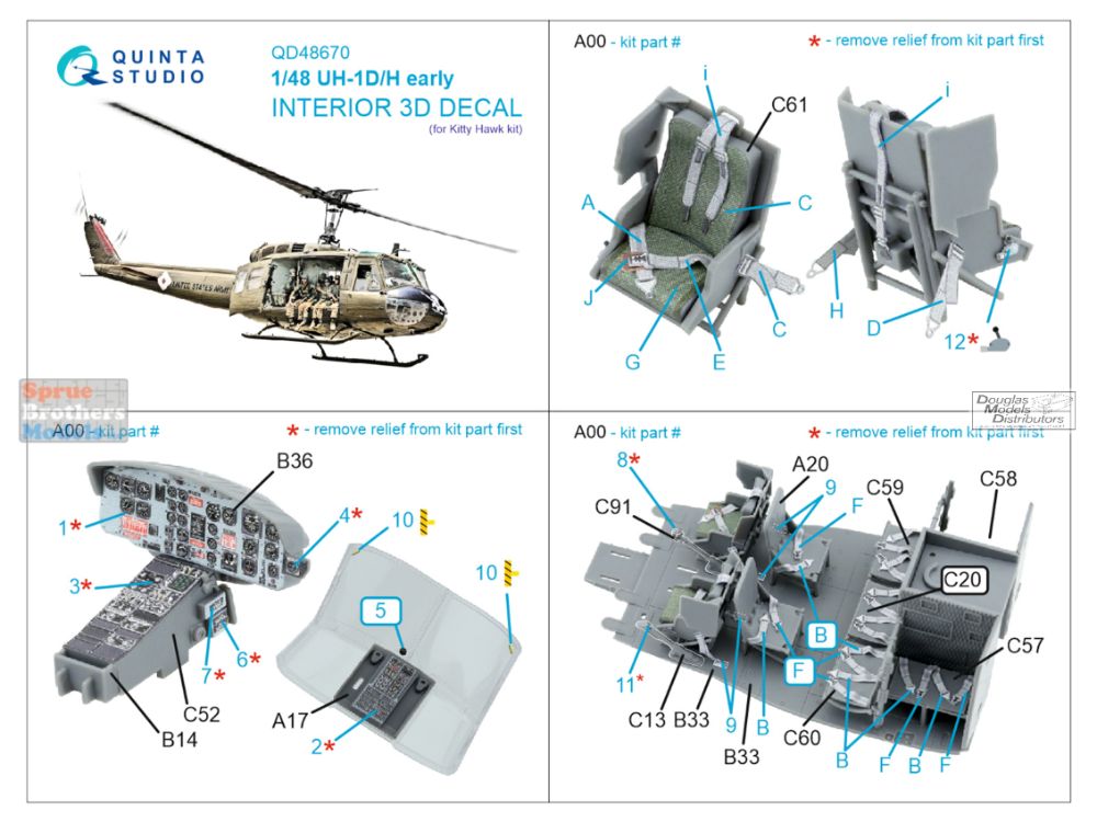 QTSQD48670 1:48 Quinta Studio 3D Decal - UH-1D/H Early Huey (ZIM/KTH kit)