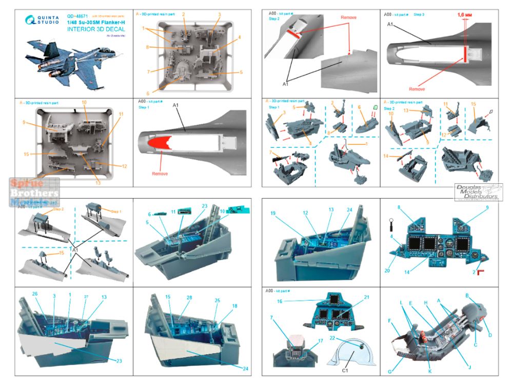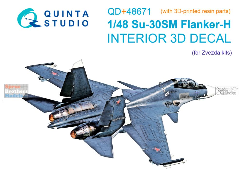 QTSQD48671R 1:48 Quinta Studio 3D Decal - Su-30SM Flanker-H + Resin Parts (ZVE kit)