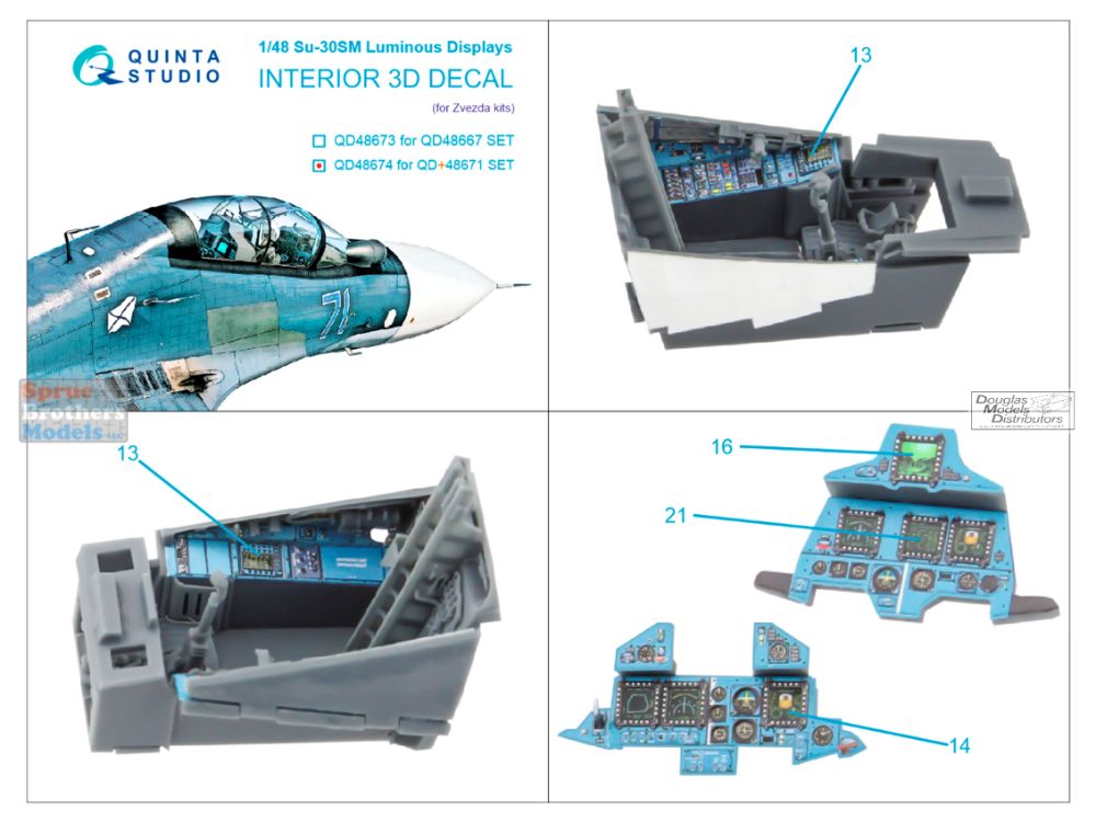 QTSQD48674 1:48 Quinta Studio 3D Decal - Su-30SM Flanker-H Luminous Displays for QD48674/QD+48671 (ZVE kit)