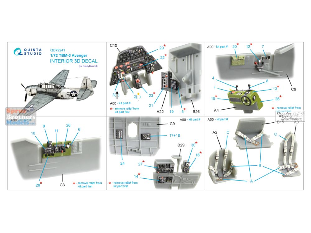 QTSQD72241 1:72 Quinta Studio 3D Decal - TBM-3 Avenger (HBS kit)
