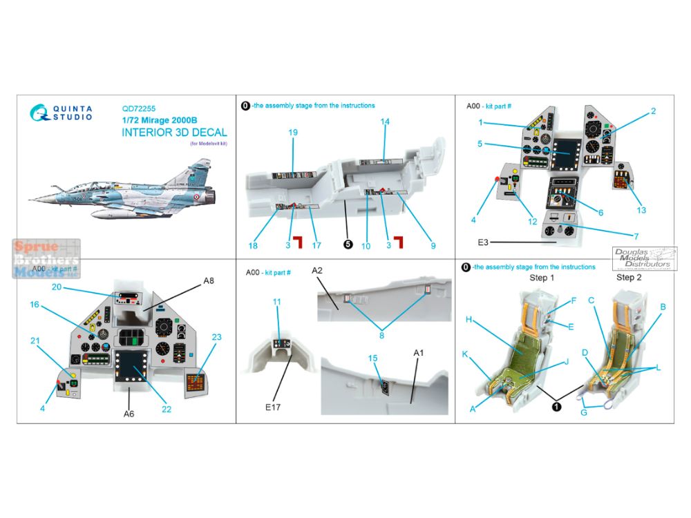 QTSQD72255 1:72 Quinta Studio 3D Decal - Mirage 2000B (MDV kit)