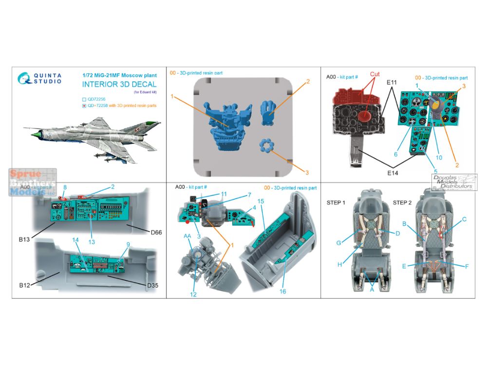 QTSQD72258R 1:72 Quinta Studio 3D Decal - MiG-21MF Fishbed [Moscow Plant] + Resin (EDU kit)
