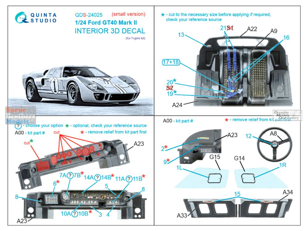 QTSQDS24025 1:24 Quinta Studio 3D Decal - Ford GT40 Mark II (FUJ kit) Small Version