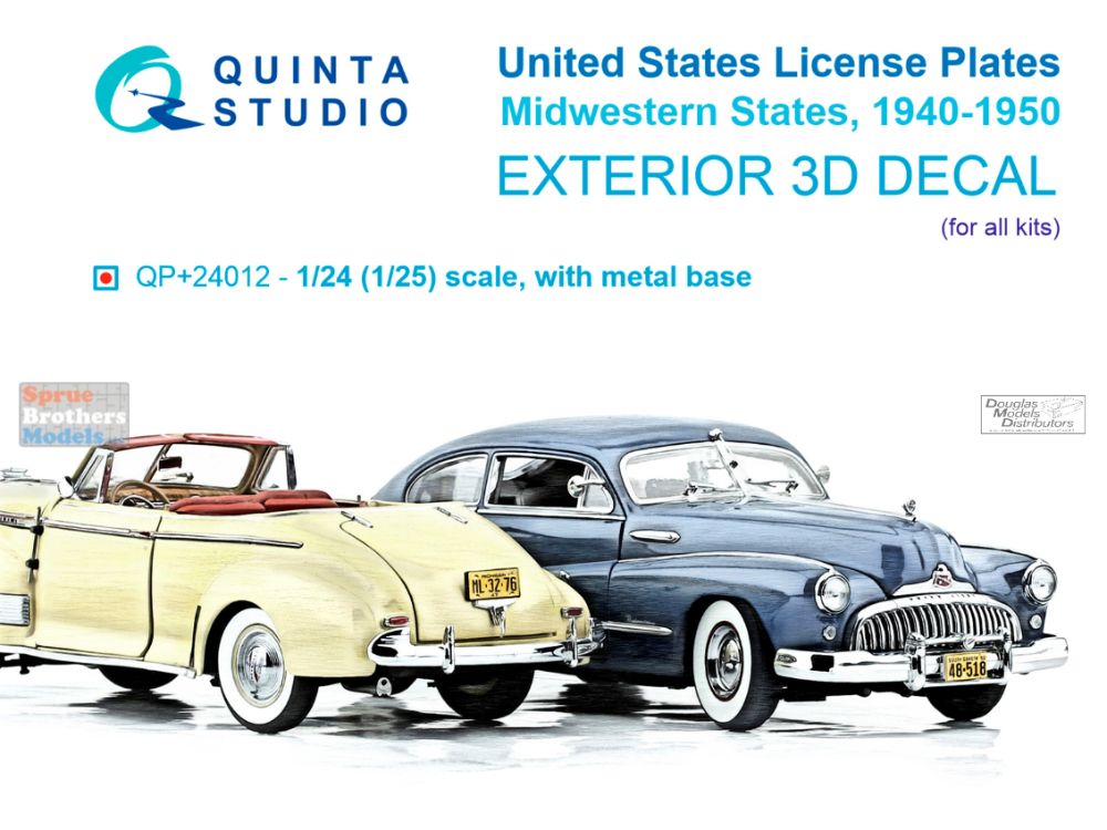 QTSQP24012R 1:24 Quinta Studio 3D Decal - US License Plates: Midwestern States 1940-1950