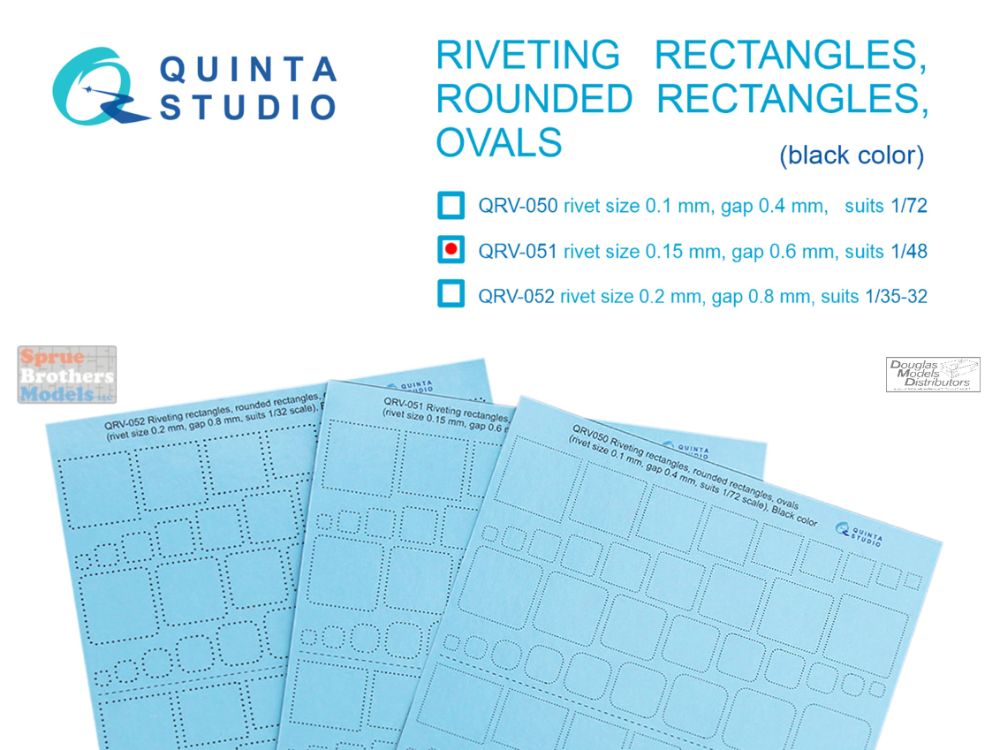 QTSQRV051 Quinta Studio 3D Decal - 1:48 Riveting Rectangles, Rounded Rectangles & Ovals (black) [0.15mm / gap 0.6mm]