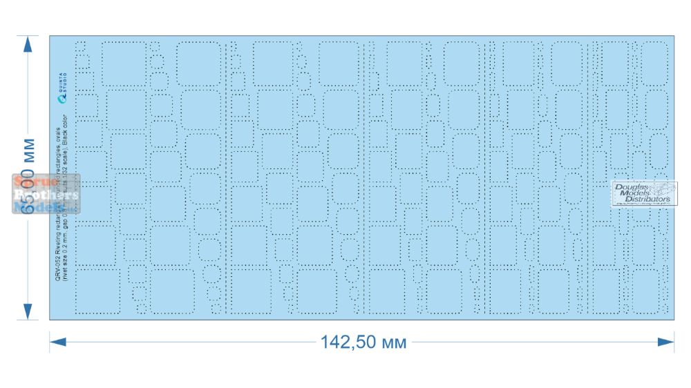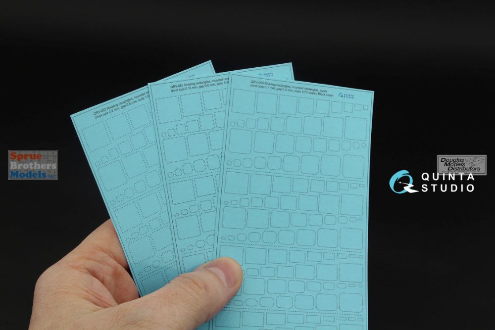 QTSQRV052 Quinta Studio 3D Decal - 1:32 1:35 Riveting Rectangles, Rounded Rectangles & Ovals (black) [0.2mm / gap 0.8mm]