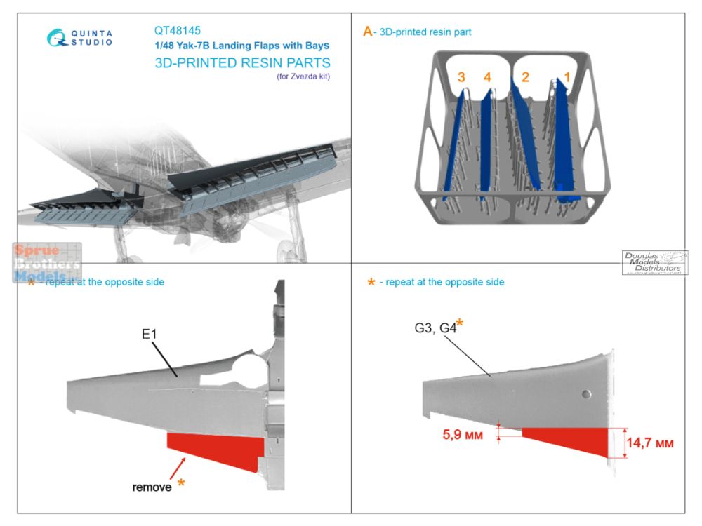 QTSQT48145 1:48 Quinta Studio Yak-7B Landing Flaps with Bays (ZVE kit)
