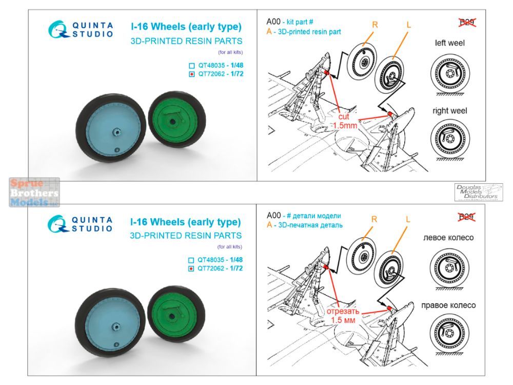 QTSQT72062 1:72 Quinta Studio I-16 Wheels Early Type