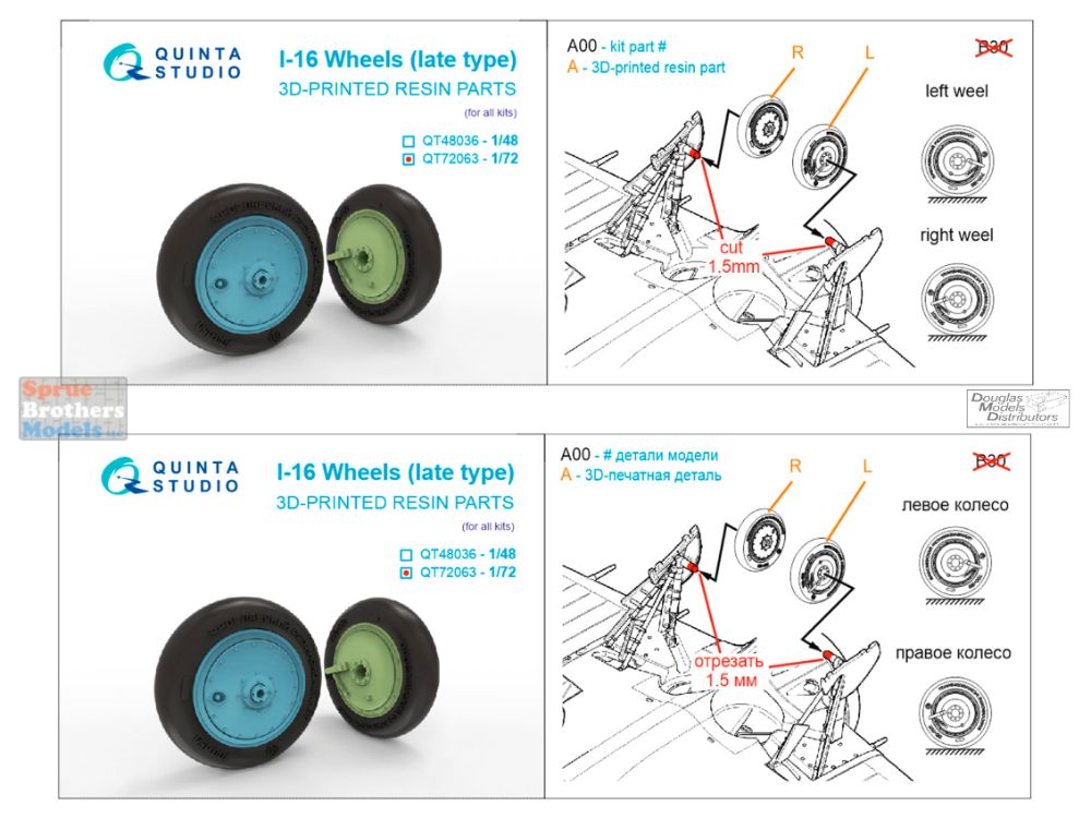 QTSQT72063 1:72 Quinta Studio I-16 Wheels Late Type