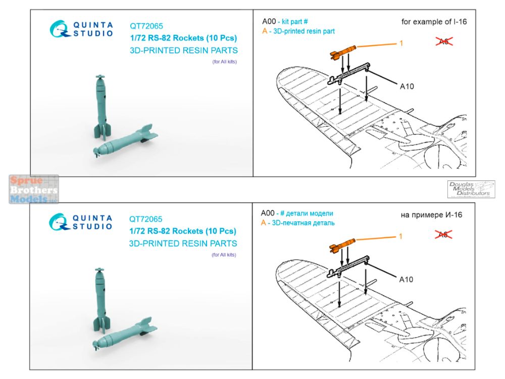 QTSQT72065 1:72 Quinta Studio RS-82 Rockets Set