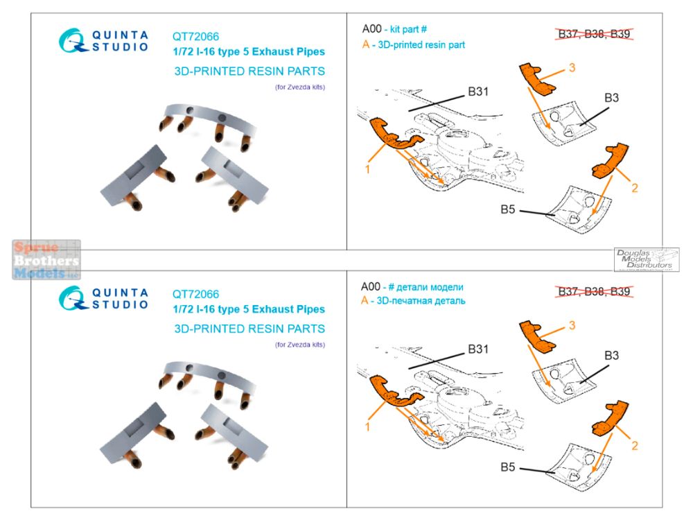 QTSQT72066 1:72 Quinta Studio I-16 Type 5 Exhaust Pipes Set
