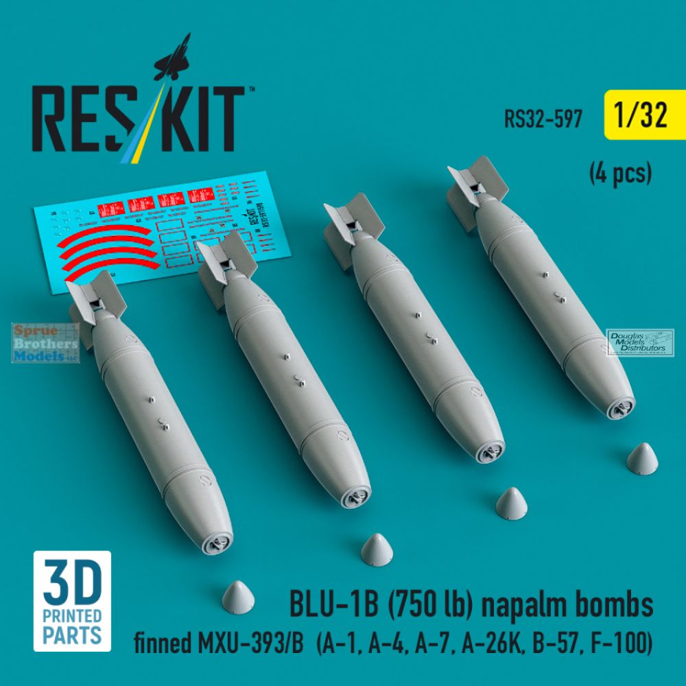 RESRS320597 1:32 ResKit BLU-1B (750lb) Napalm Bomb Set