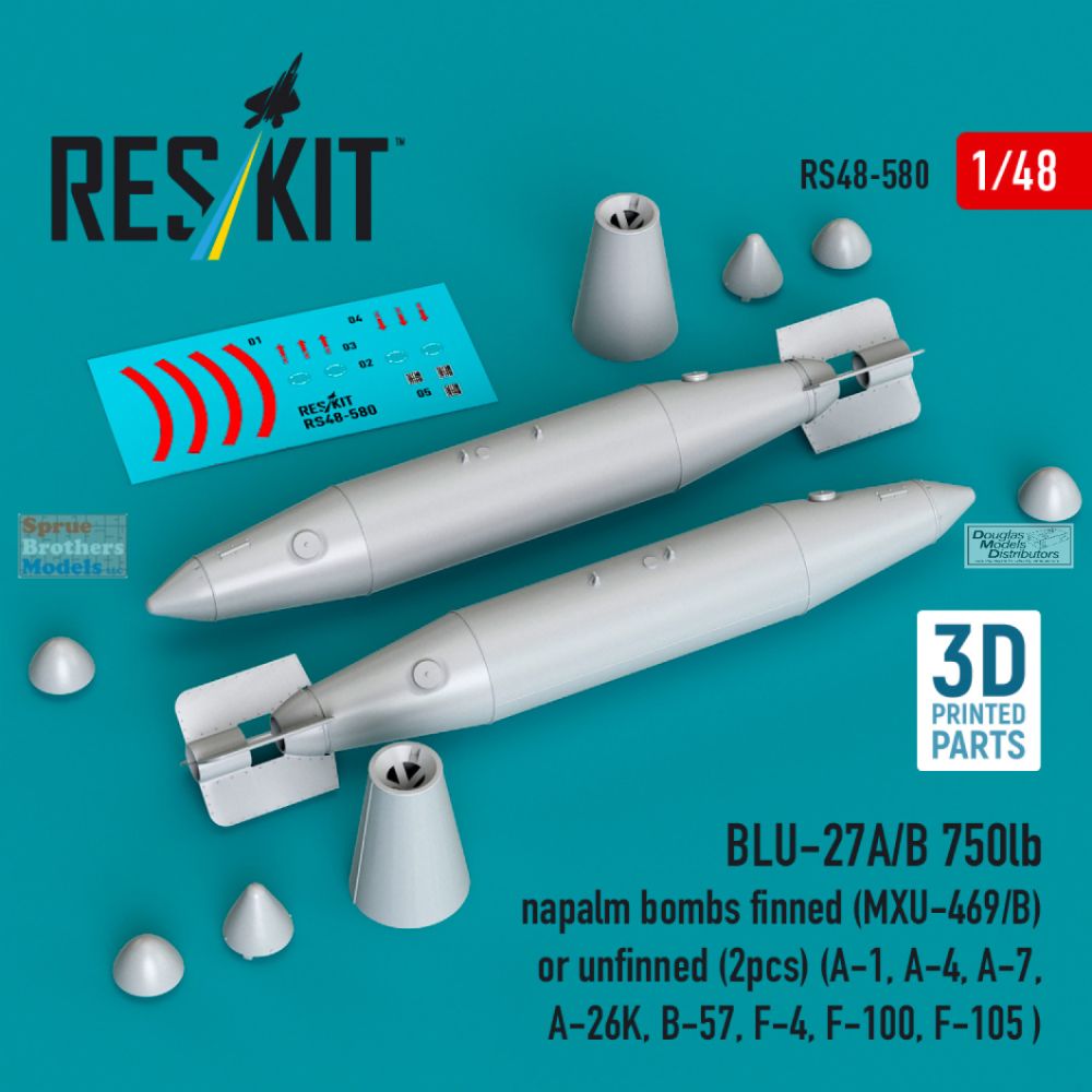 RESRS480580 1:48 ResKit BLU-27A/B 750lb Napalm Bomb Set