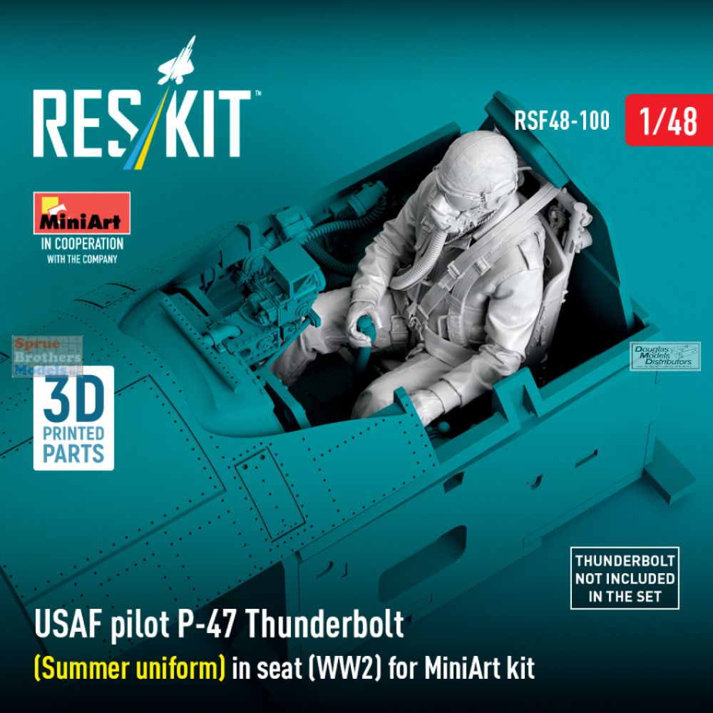 RESRSF480100F 1:48 ResKit WW2 USAAF Pilot Figure in Seat for P-47 Thunderbolt [Summer Uniform] (MIA kit)