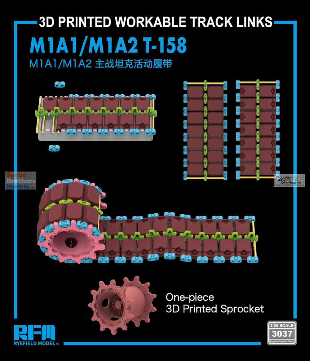 RFMRM3037 1:35 Rye Field Model M1A1/M1A2 Abrams T-158 3D Printed Workable Track Set