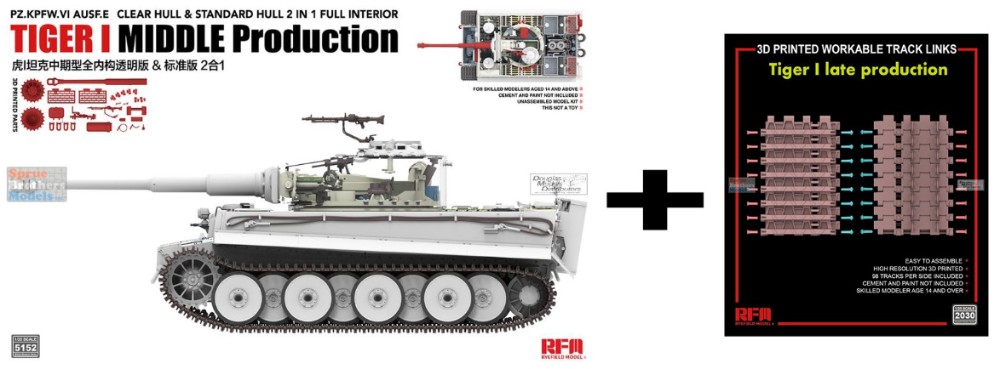 RFMRM5152C 1:35 Rye Field Model Sd.Kfz.181 Ausf.E Tiger I Mid + 3D Printed Workable Track Link Set