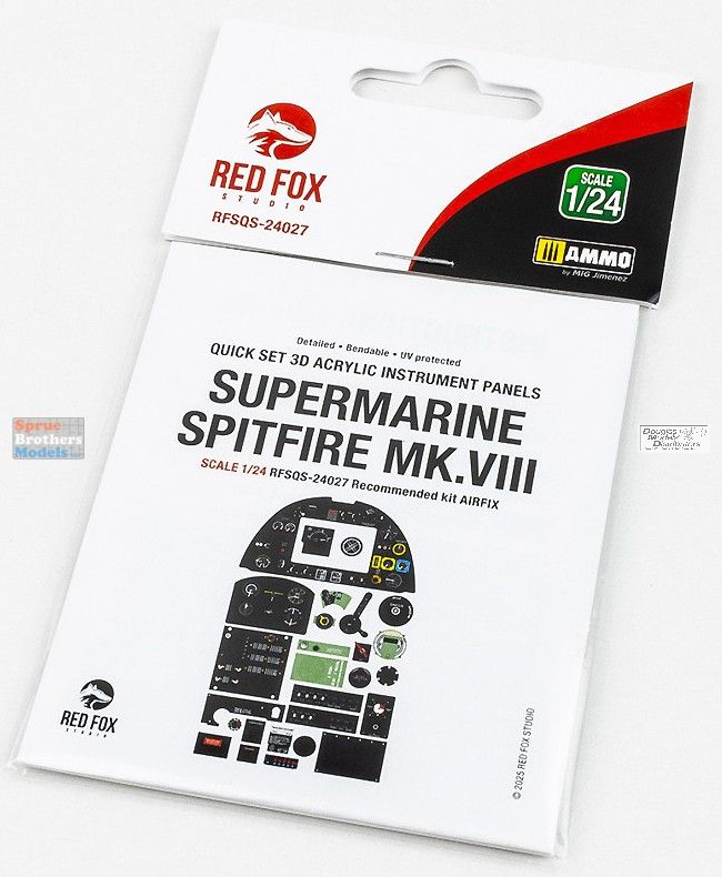 RFSQS24027 1:24 Red Fox Studio Quick Set Acrylic Instrument Panel - Spitfire Mk.VIII (AFX kit)