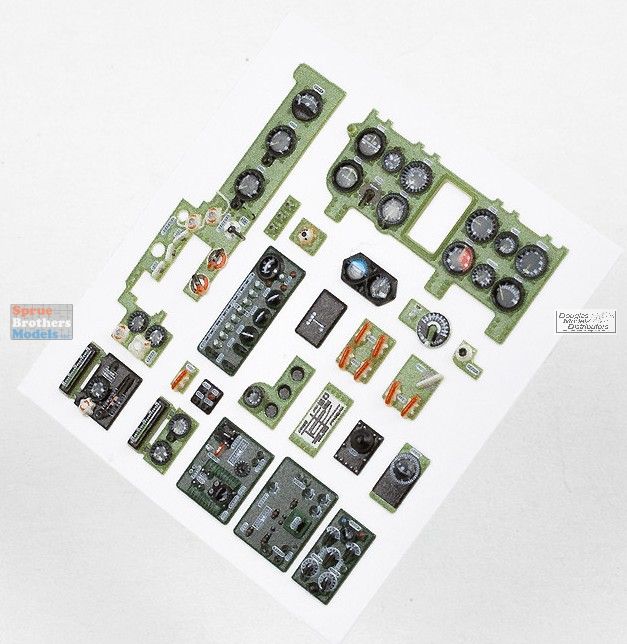 The product is suitable for upgrading model aircraft cockpits. It has a plastic, non-flat surface with a 3D effect. It is best glued with cyanoacrylate, but PVA or other glues can also be used. The product can be washed with both oil-based and acrylic paints and moderately ester-based paints. It can also be minimally bent or sanded.