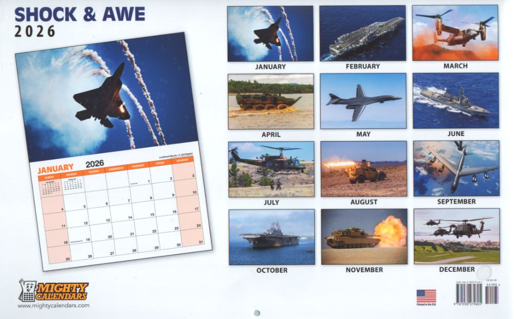 SBM089 Sprue Brothers Models 2026 Shock & Awe Wall Calendar by Mighty Calendars