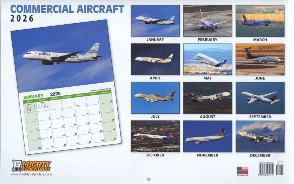 SBM090 Sprue Brothers Models 2026 Commerical Aircraft Wall Calendar by Mighty Calendars
