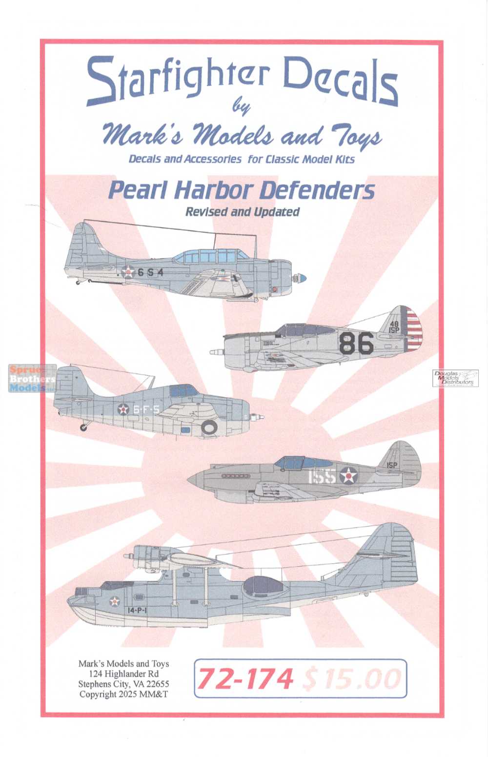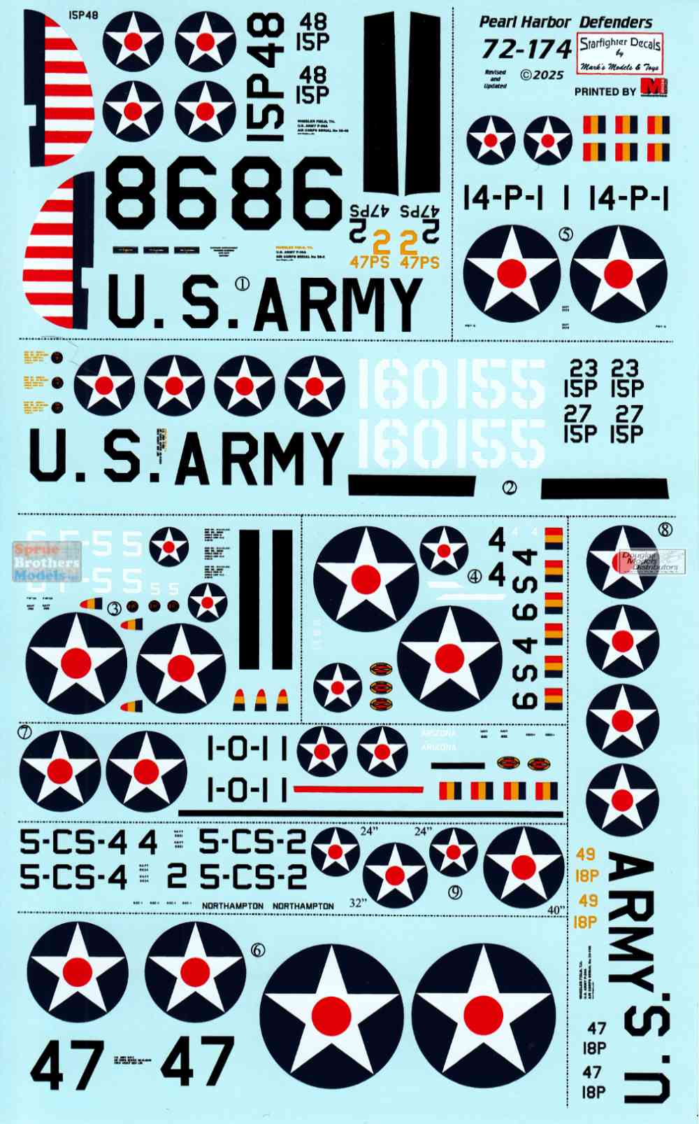 SFD72174 1:72 Starfighter Decals - Pearl Harbor Defenders (P-26 P-36 P-40 B-17C F4F-3 SBD-2 OS2U-1 PBY-5 SOC-1))