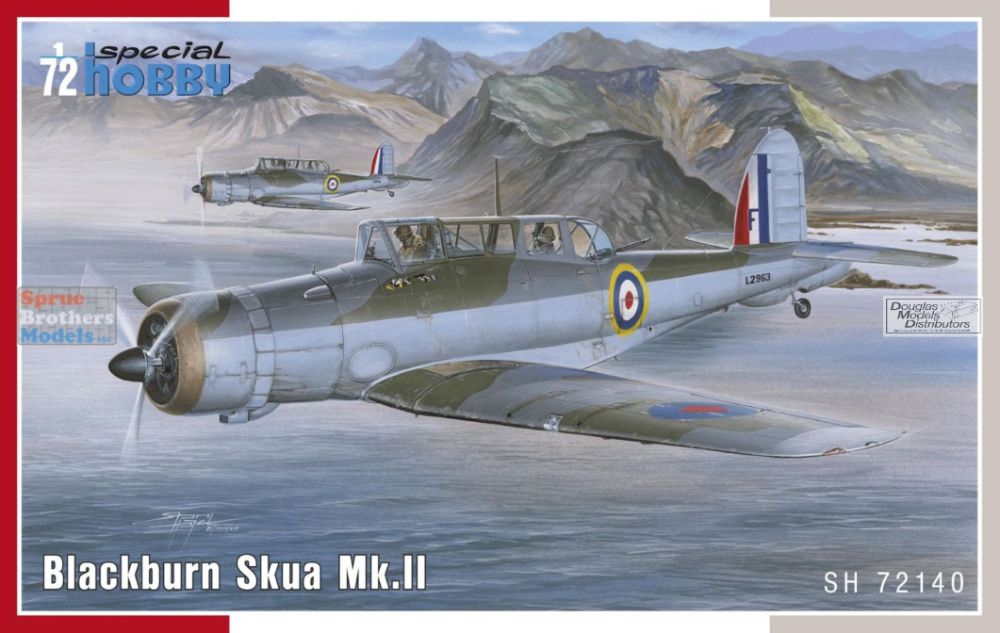 In 1934, the Air Ministry issued specifications O.27/34. They contained requirements for a multi-role aircraft for shipboard service. The aircraft was to be operated as a fighter as well as a dive bomber. A fighter for aircraft carriers in the British concept of the time was a two-seater aircraft designed for long operational flights and combat with enemy reconnaissance aircraft. Combat against enemy bombers, let alone fighters, was not envisaged. The B.24 project by the chief designer of the Blackburn company, Eng. G.E. Petty, was chosen as the best one. Petty designed an all-metal low-wing aircraft with folding wings and retractable landing gear. Under the fuselage, the aircraft had a arresting hook and a recess for a bomb of up to 226 kg. The first prototype, later named Skua Mk.I, took off on 9 February 1937. After successful tests, serial production began immediately. The production aircraft were powered by Bristol Perseus XII engines and were designated Skua Mk.II. They were delivered to fighter squadrons Nos. 800, 801, 803 and 806, and were also supplied to training squadrons and target towing units. Despite the rush in production, they were considered obsolete in the fighter role. With the outbreak of war, Skua aircraft quickly entered combat, operating from both aircraft carriers and land bases. In the first bombing attack on a German submarine on 14 September, two Skuas from a three aircraft section were lost to their own low-quality bombs. On 26 September, two aircraft from No 803 sqn shot down an enemy Dornier Do 18. This was the first confirmed British aerial victory of the Second World War. The Skua is closely associated with more firsts. During the Norwegian Campaign on 10 April 1940, sixteen Skuas sank the German cruiser Königsberg. No 800 Sqn., led by Capt. R.T. Partridge, and No 803 Sqn., led by Lt. W.P. Lucy, took off from Hatston in the Orkneys. This was the first successful air attack on a battleship during the Second World War. Skuas took part in the Battle of Dunkirk and on board HMS Ark Royal they intervened in the fighting in the Mediterranean. Here the Skua achieved another first, on 3 July 1940, a Skua from Ark Royal fought against fighters from a former ally, France. It became the first British aircraft to fight against the French and also the first to be lost in this undeclared war. The last Skuas were withdrawn from HMS Ark Royal in April 1941. They then served only with non-combat squadrons. Their combat career was relatively short, but despite the low performance of the Skuas as a fighter, several aces with more than five kills were achieved on them. As bombers they could have been much more successful, but they were not properly used by the Admiralty, to the detriment of the Royal Navy. We are returning the model to the offer after several years. Two ssprues made of grey plastic are joined by a sprue of clear parts, etchings and detailed PUR parts. Decals are offered for three machines in FAA camouflage scheme.
