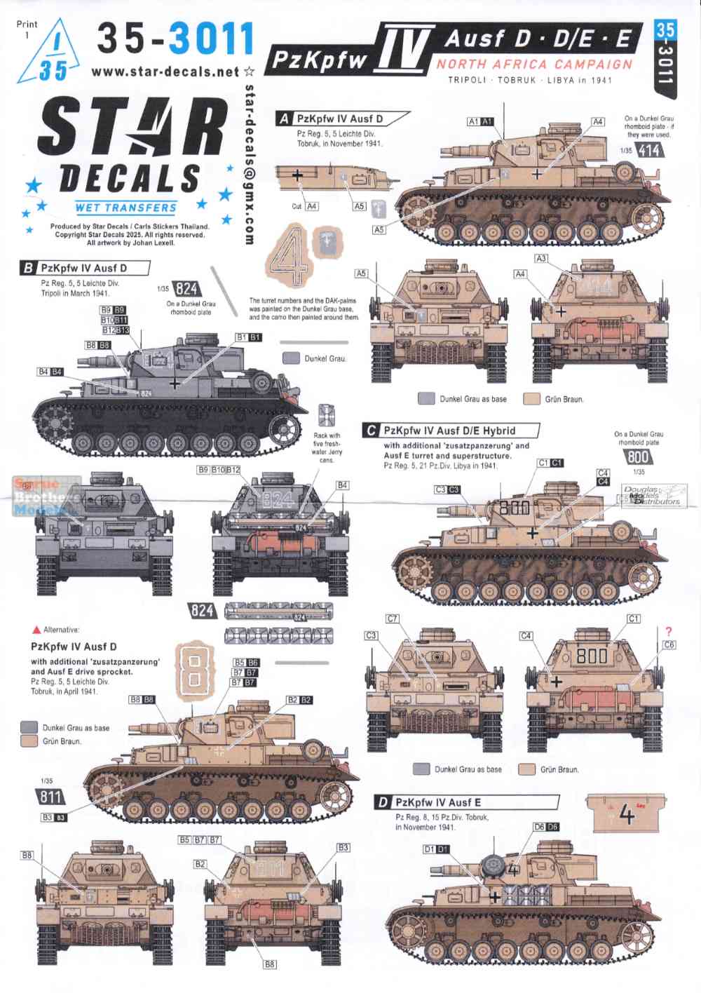 SRD353011 1:35 Star Decals - PzKpfw IV Ausf D/E North African Campaign
