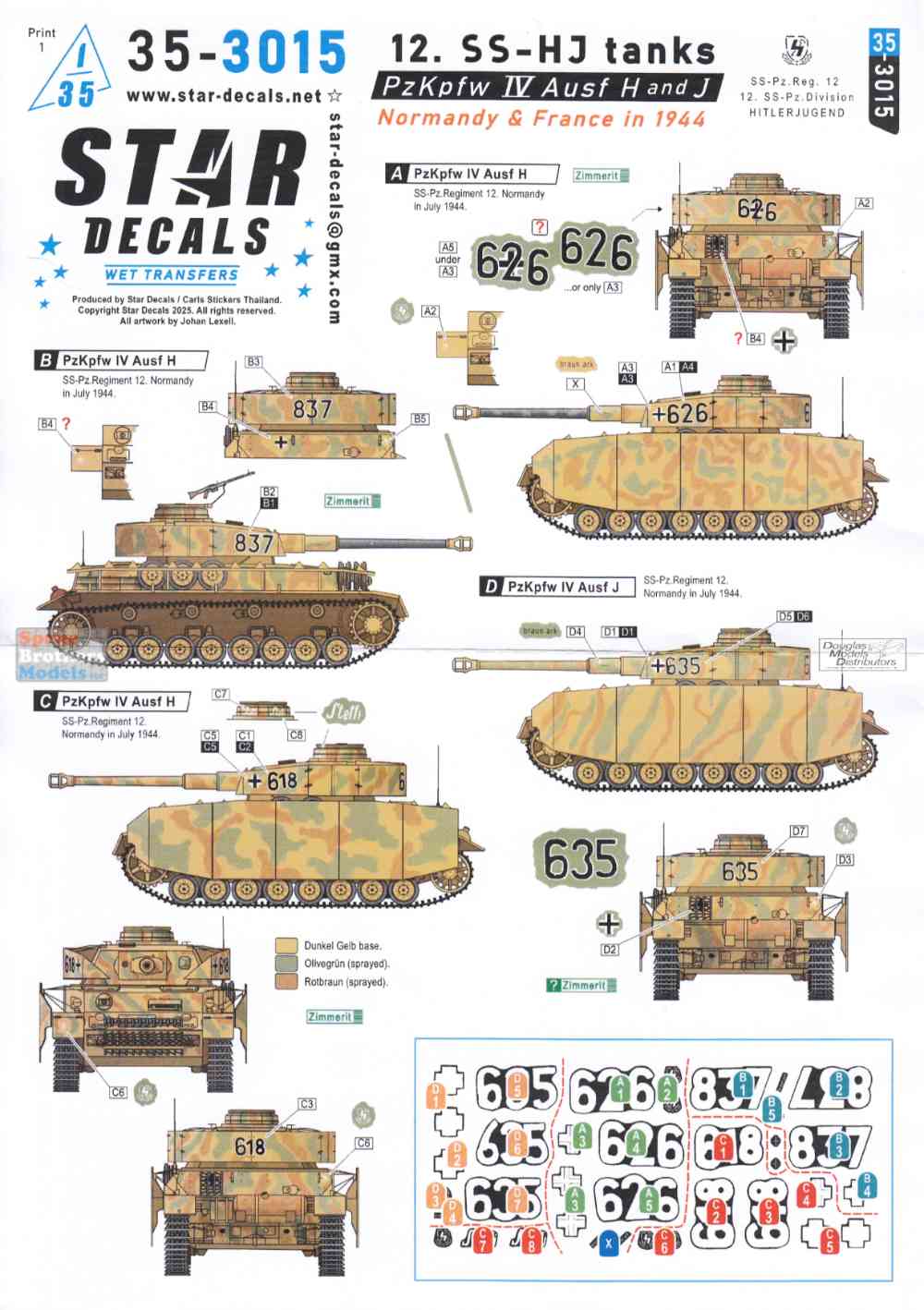 SRD353015 1:35 Star Decals: 12-SS Hitlerjugend Tanks - PzKpfw IV Ausf H and J