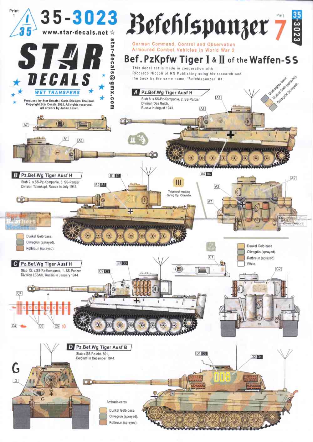 SRD353023 1:35 Star Decals: Befehlspanzer #7 - Bef-PzKpfw Tiger I and Tiger II of the Waffen-SS