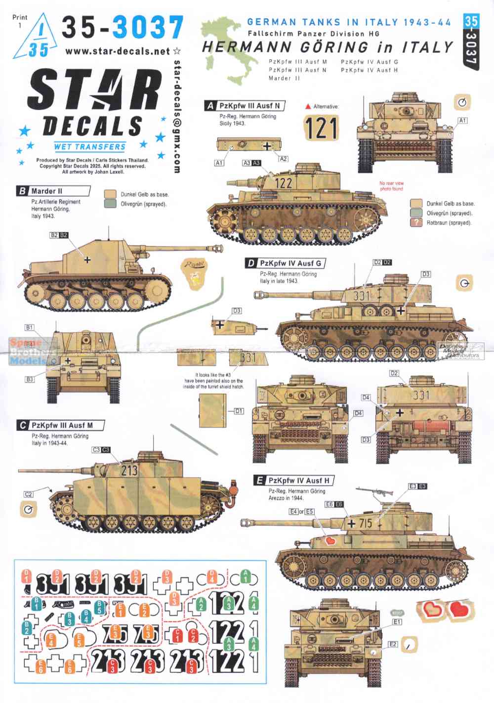 SRD353037 1:35 Star Decals: German Tanks in Italy 1943-44 - Hermann Goring in Italy