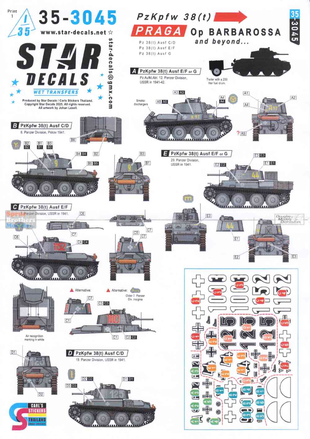 SRD353045 1:35 Star Decals: PzKpfw 38(t) Praga Operation Barbarossa and Beyond